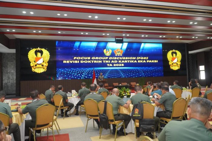 Faktaindonesianews.com, Jakarta,- Komandan Kodiklatad Letjen TNI Mohamad Hasan memimpin pelaksanaan Focus Group Discussion (FGD) Revisi Doktrin TNI AD Kartika Eka Paksi TA 2025 yang digelar di Aula Jenderal Besar A.H. Nasution, Mabesad Jakarta Pusat, Kamis (23/10/2025).